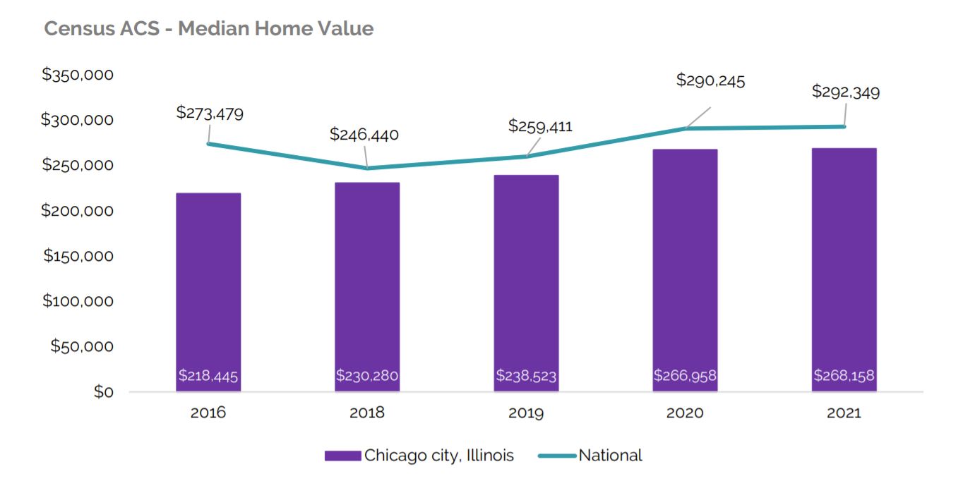 The median home value in 2023 was $306,012 compared to $720,000 in New York and $972,818 in Los Angeles This allows more Chicagoans to afford a house and this is why Chicago homeownership rate is 62.3% compared to about 33% in NY and 45% in Los Angeles.