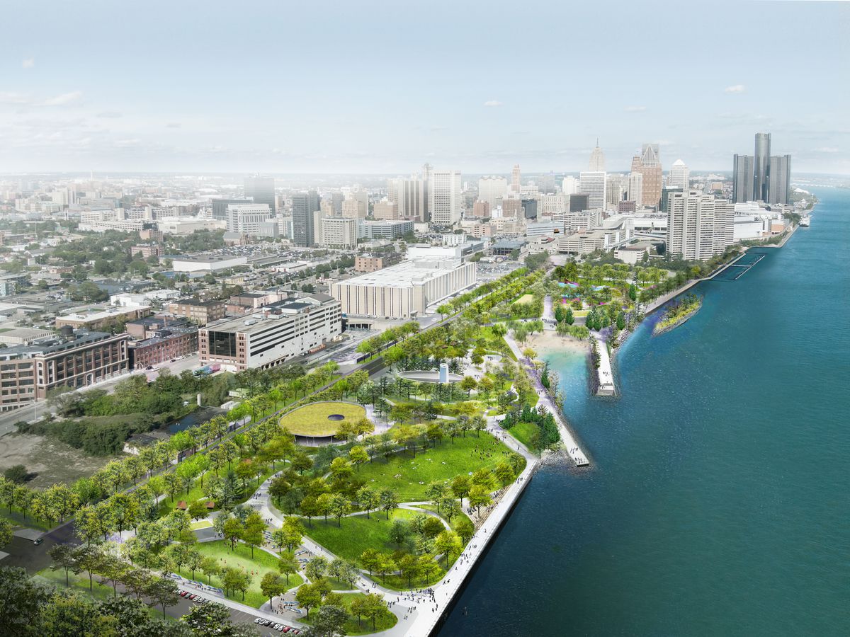 Several downtown redevelopment projects—of which Campus Martius Park is one of the most notable—have revitalized parts of the city. The Detroit International Riverfront includes a partially completed three-and-one-half-mile riverfront promenade with a combination of parks, residential buildings, and commercial areas. Downtown is home to the second tallest hotel in the entire USA and the Detroit Marriott at the Renaissance Centre was the country’s tallest hotel up until December of 2013.