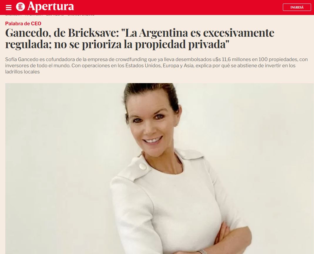 Noticias > Artículo de Prensa > Gancedo, de Bricksave: "La Argentina es …