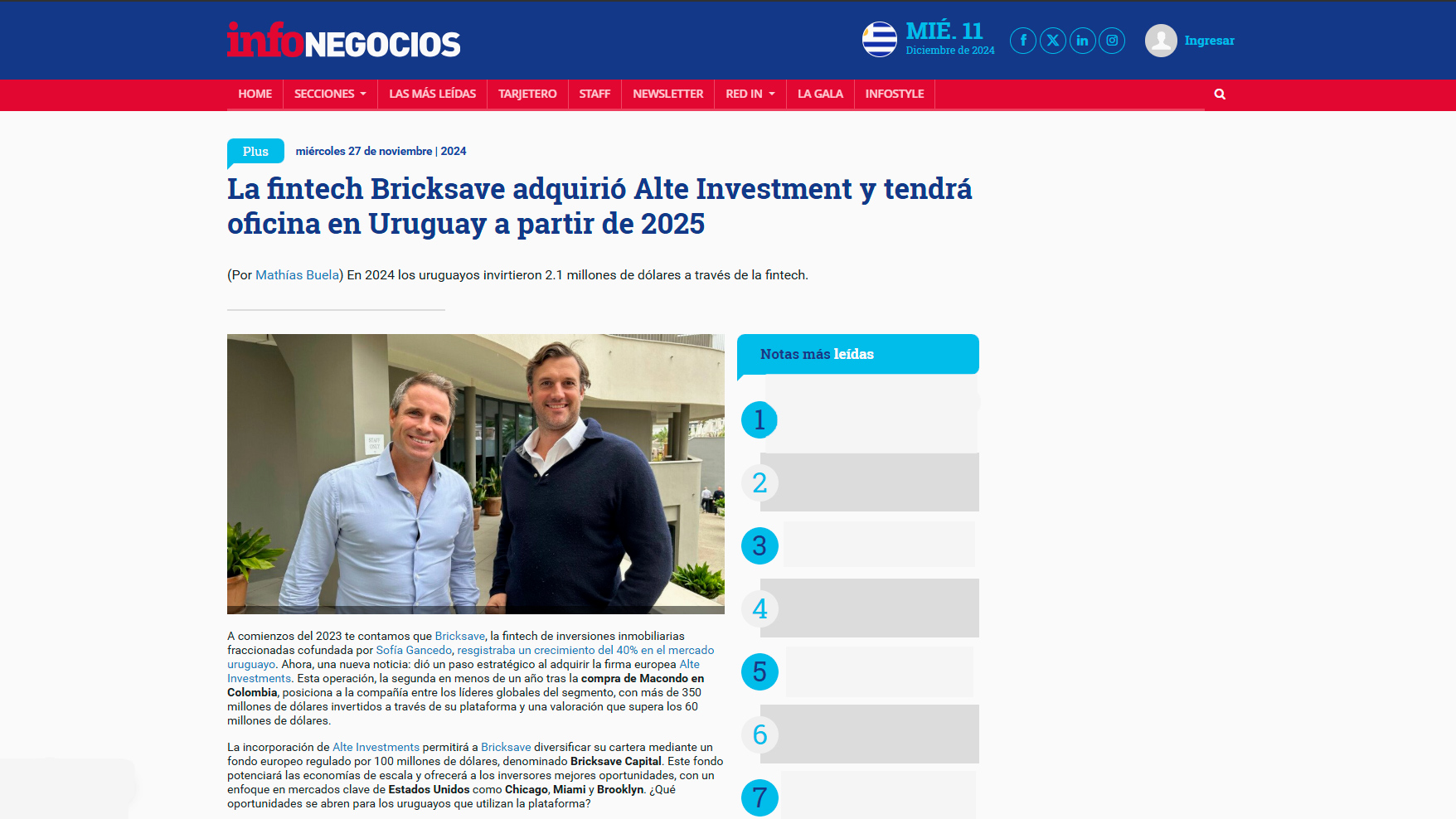 Noticias > Artículo de Prensa > Bricksave abrirá una oficina en Urugay …