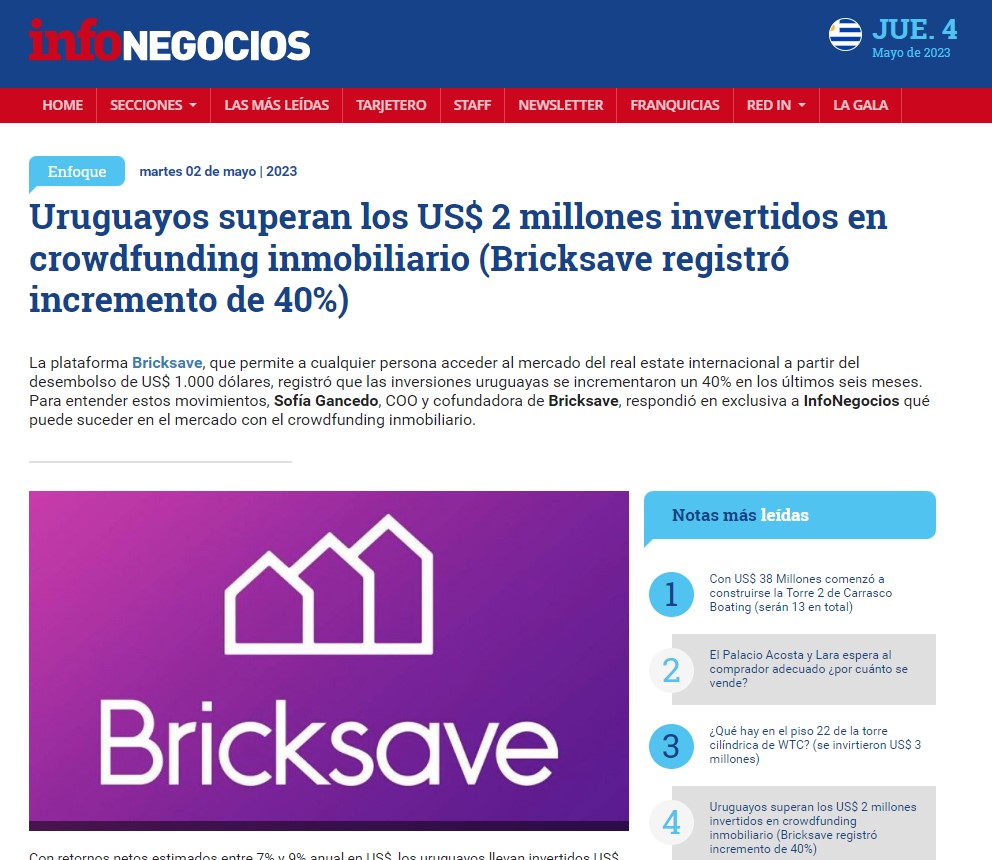 News > Press Article > Uruguayans surpass US$ 2 million invested …