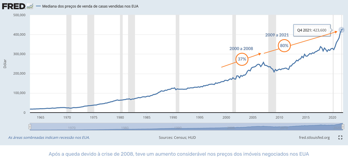 A crise de 2008 continua moldando o setor imobiliário moderno, tendo como efeito de longo prazo uma redução na construção de moradias, desempenhando papel fundamental no atual aumento dos preços. O desequilíbrio entre a oferta e a demanda por habitação segue sendo percebido por quatro principais pontos:
